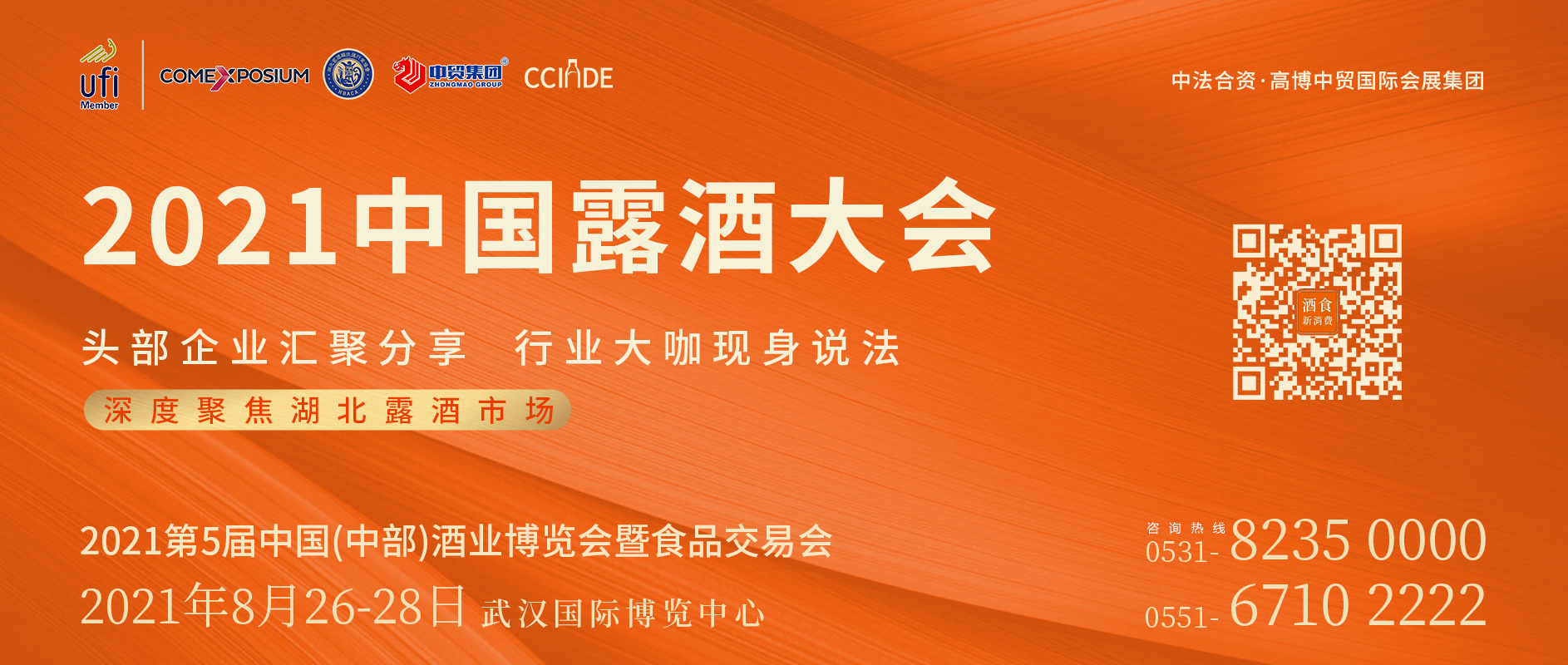 本屆展會由中國酒類流通協(xié)會、湖北省商務(wù)廳指導,湖北省酒類流通行業(yè)協(xié)會、湖南省酒業(yè)協(xié)會、江西省酒類流通協(xié)會、安徽省酒業(yè)協(xié)會、法國高美艾博展覽集團、中貿(mào)科技集團共同主辦,湖北省酒類流通行業(yè)協(xié)會、高博中貿(mào)國際會展(湖北)有限公司承辦。