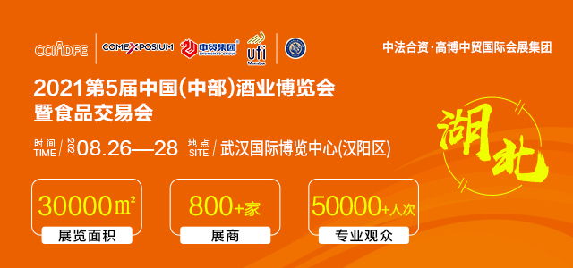 據(jù)悉, 2021第五屆中國(中部)酒業(yè)博覽會暨食品交易會在前四屆基礎(chǔ)上,全新升級、華麗蝶變,將于8月26-28日在武漢國際博覽中心舉辦。